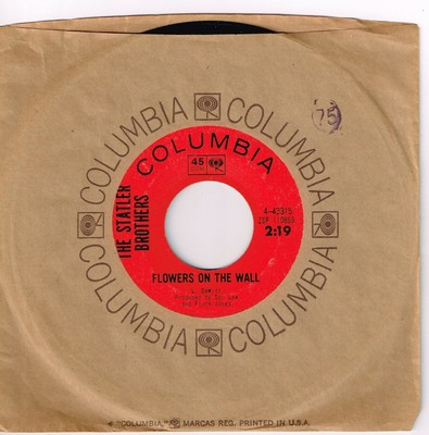 The Statler Brothers - Flowers On The Wall (1965, Santa ... from img.discogs.com A post on the group's website said that reid "had bravely endur… The group debuted in 1965 with flowers on the wall, a number 2 country and number 4 pop hit. Written and composed by the group's original tenor, lew dewitt, the song peaked in popularity in january 1966, spending four weeks at number two on the billboard magazine hot country singles chart, and reaching number four on the billboard hot 100 chart. Flowers on the wall is a song made famous by american country music group the statler brothers. The statler brothers (sometimes simply referred to as the statlers) were an american country music, gospel, and vocal group.the quartet was formed in 1955 performing locally, and from 1964 to 1972, they sang as opening act and backup singers for johnny cash. The discography of the statler brothers, an american country music group, consists of 38 albums and 69 singles. All 17 statler hotels were sold to conrad hilton in 1954 and the hotel became the statler hilton in 1958. The song won the 1966 grammy award for best con.